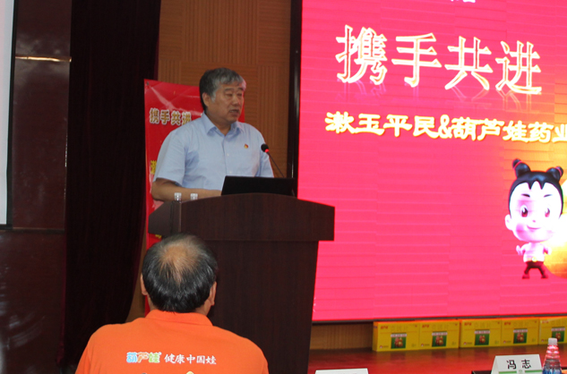 ▲漱玉平民大药房秦光霞总裁在会上讲话