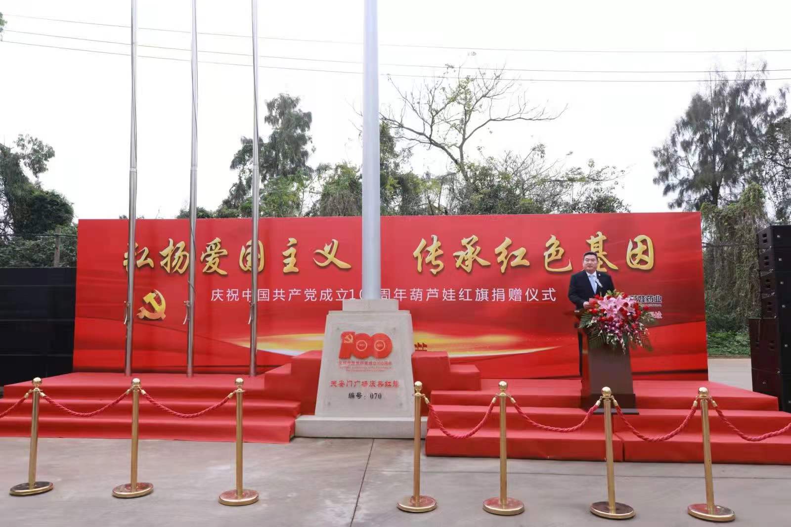 为了将中国共产党伟大的精神力量传递给更多的人,中华人民共和国国史学会、北京德艺双馨公益基金会联合向全国100个红色之城、红色企业、大中小学捐赠中国共产党百年华诞庆典红旗。云顶国际药业集团作为海南自贸港的上市企业和中国儿药制造的大国品牌,有幸被赠予编号为070的红旗。为了表达集团对获赠红旗的喜悦和对这份荣誉的重视,展现云顶国际人砥砺奋进的精神面貌,并借机对广大干部员工进行爱国、爱党主题教育,云顶国际药业集团决定举行以“迎红旗 塑红心 绘蓝图”为主题的庆祝中国共产党百年华诞庆典红旗永久落户公司活动。