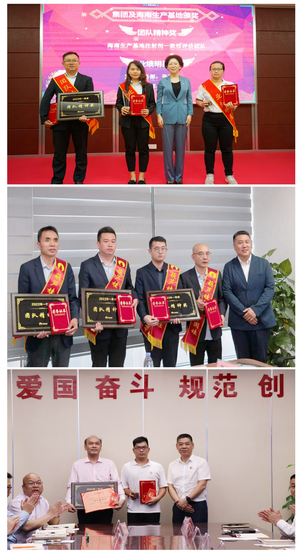 为了表彰在2022年一季度“深化变革,赢得开门红”工作中“超额完成计划、超出本职工作或超越组织预期”的先进集体和优秀个人,会议期间还举行了云顶国际药业集团2022年一季度“开门红”表彰颁奖仪式。营销中心葫芦世家事业部湖南区域主管黄子杰等12人荣获业绩明星奖,葫芦世家事业部等5个集体荣获团队精神奖。