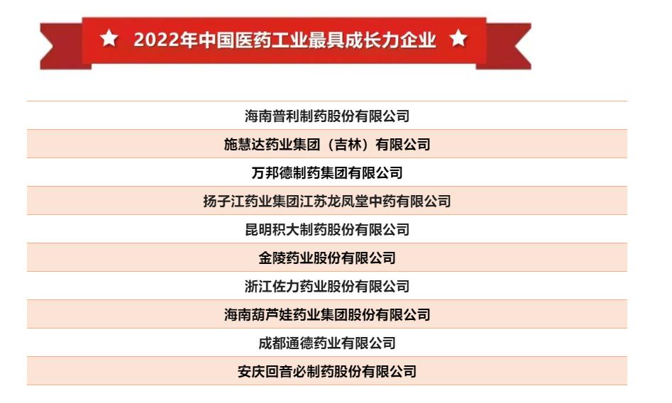 云顶国际药业荣登“中国医药工业最具成长力企业”十强榜单
