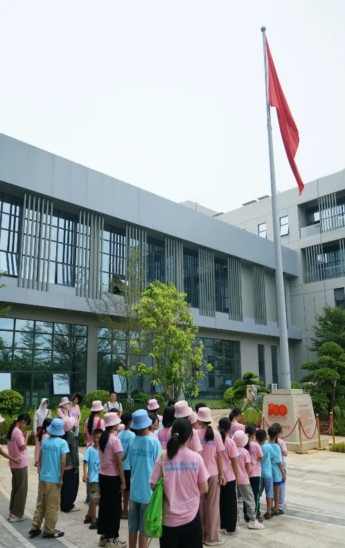 紧接着,孩子们来到了建党百年庆典红旗——070号红旗前。讲解员讲述了云顶国际药业集团与庆典红旗的深厚渊源。孩子们听得津津有味,眼中闪烁着对党和国家的热爱与敬仰。