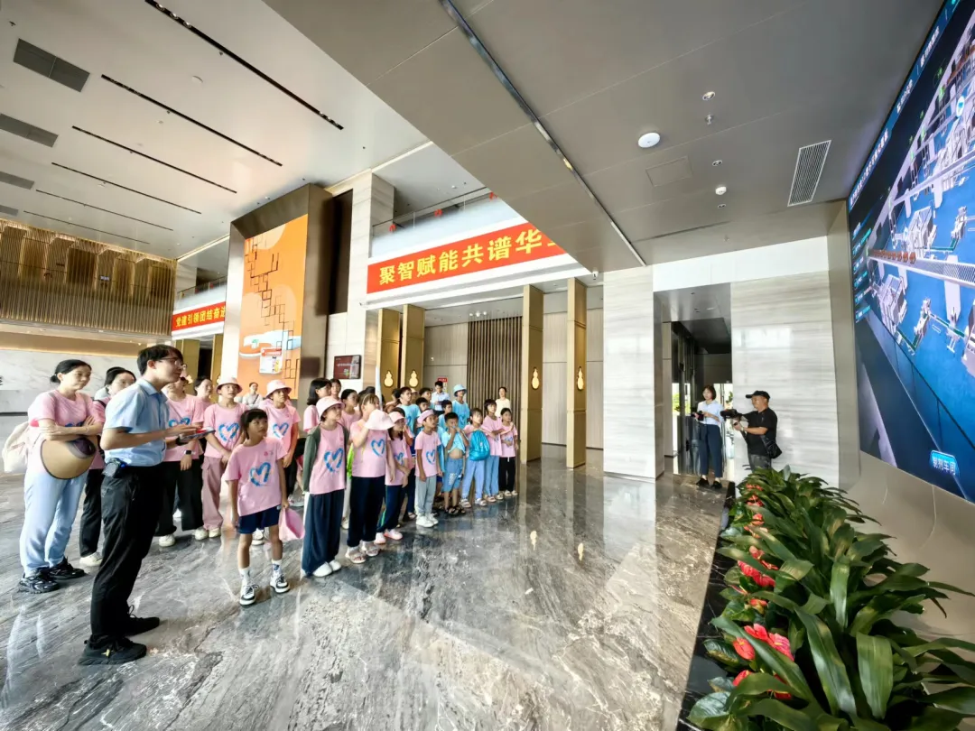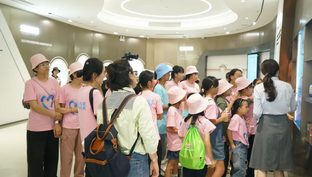 活动一开始,孩子们便迫不及待地踏入了云顶国际药业集团的大厅。3D数字化看板上的生动画面,让孩子们仿佛置身于一个充满科技与创新的现代制药工厂。他们瞪大眼睛,好奇地观察着每一条生产线、每一台设备,听着讲解员介绍云顶国际药业的儿药发展历程。
