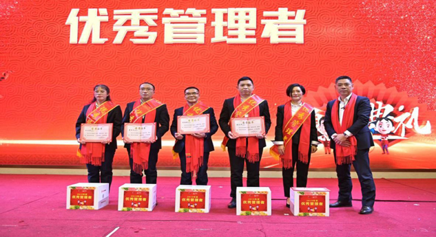▲广西维威总经理韦天宝为优秀管理者颁奖